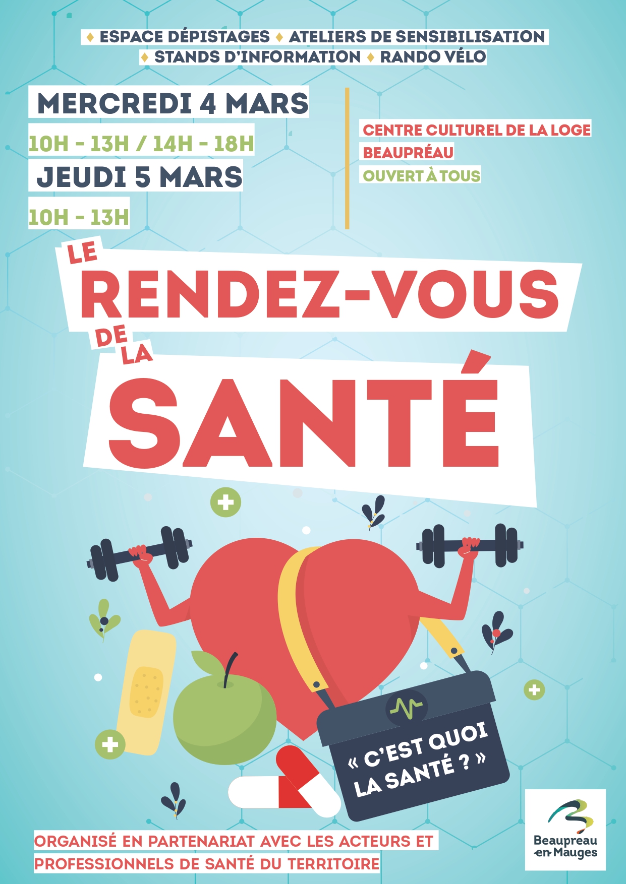 👉 Orchestré par Ville de Beaupréau-en-Mauges, ce temps de rencontre avec les Habitants des mauges avait pour objectif « d’encourager chacun à devenir acteur de sa santé! »